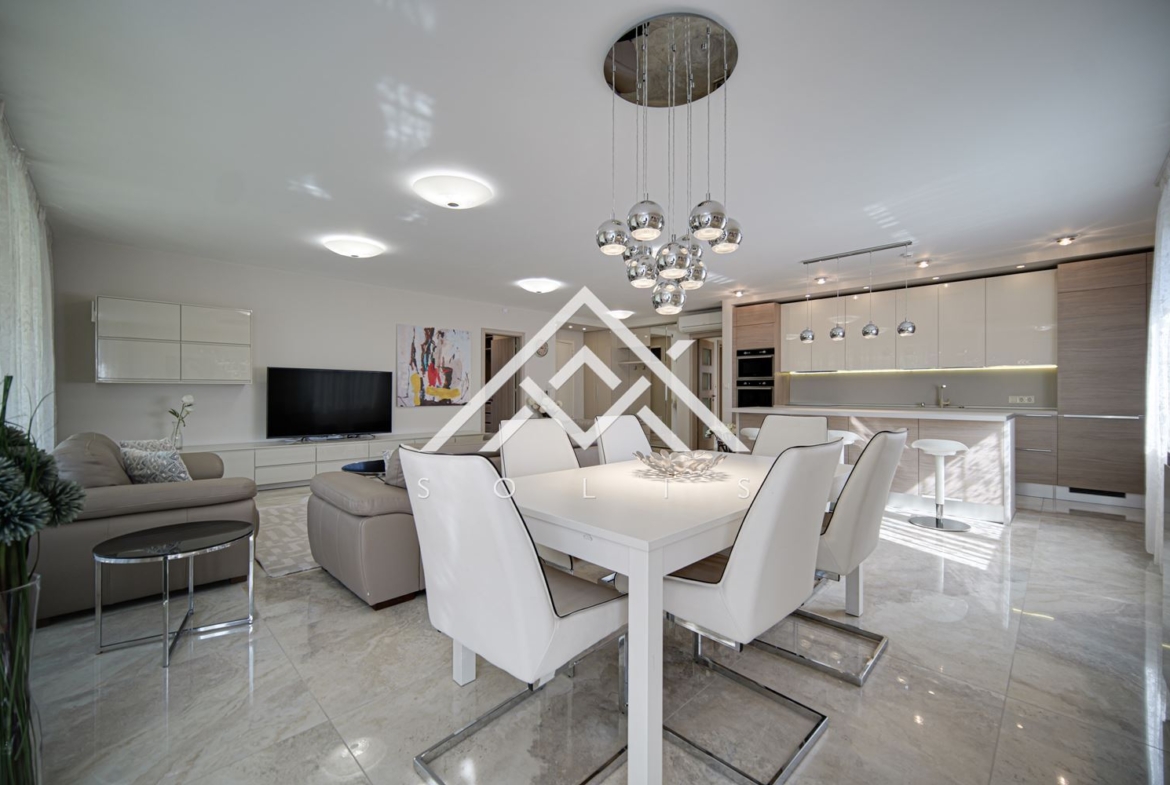 AVASOLIS propose à la location un appartement de quatre pièces, élégamment et modernement meublé, dans un complexe résidentiel fermé avec sécurité et accès contrôlé dans le quartier de Simeonovo. Ce bien immobilier est situé à proximité immédiate du pied du mont Vitosha, vous assurant un accès rapide et facile au périphérique, à IKEA, au Sofia Ring Mall et au Business Park.